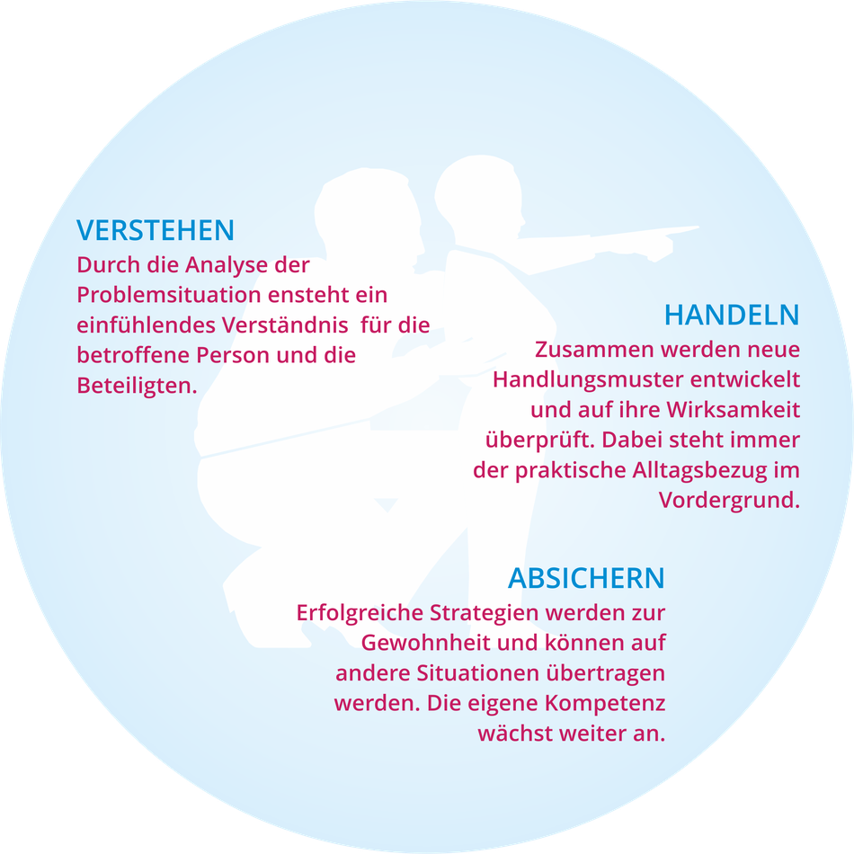 Durch Problemanalyse, gemeinsame Gespräche, verschiedene Tests sowie auch Video-Beobachtungen kommen wir zu einem klar formulierten Ziel. Wir erarbeiten unsere