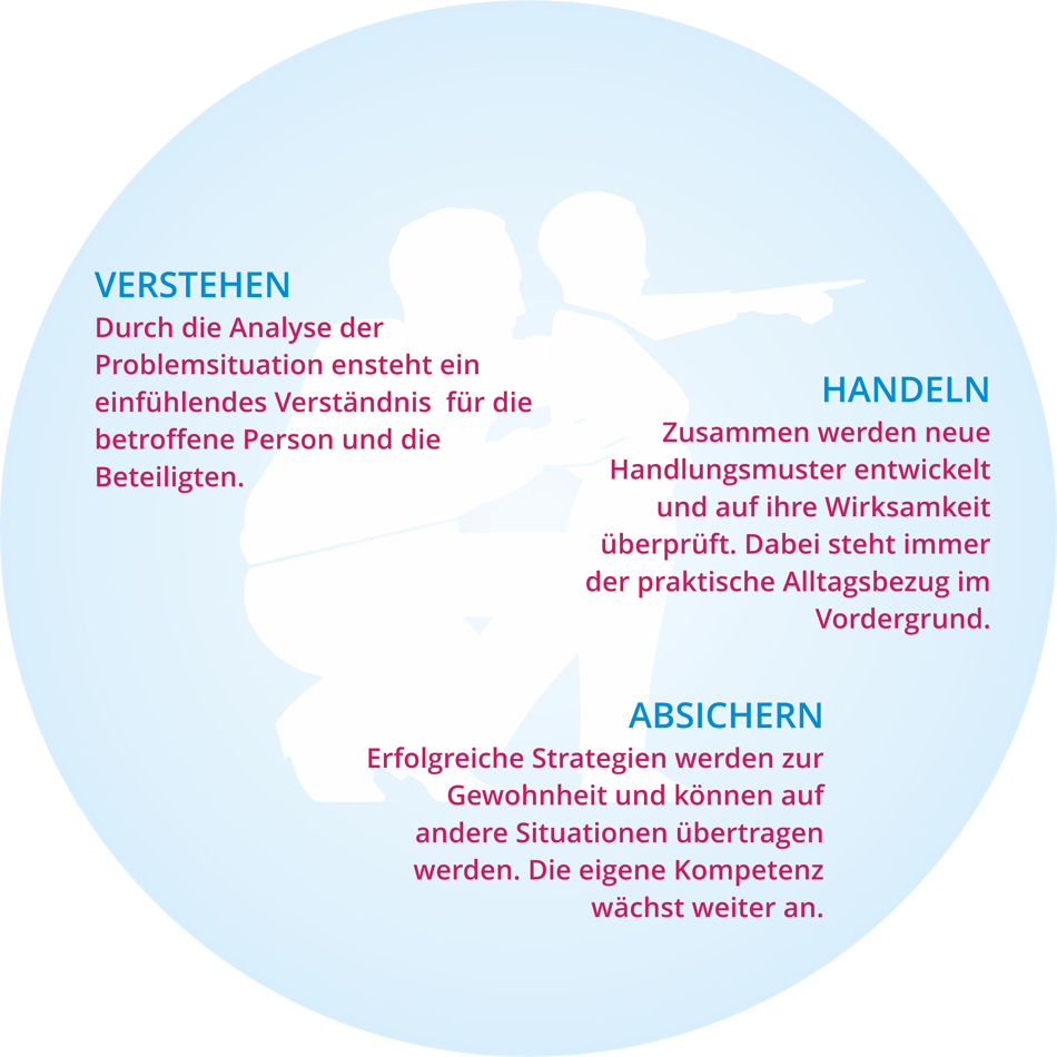 Durch Problemanalyse, gemeinsame Gespräche, verschiedene Tests sowie auch Video-Beobachtungen kommen wir zu einem klar formulierten Ziel. Wir erarbeiten unsere